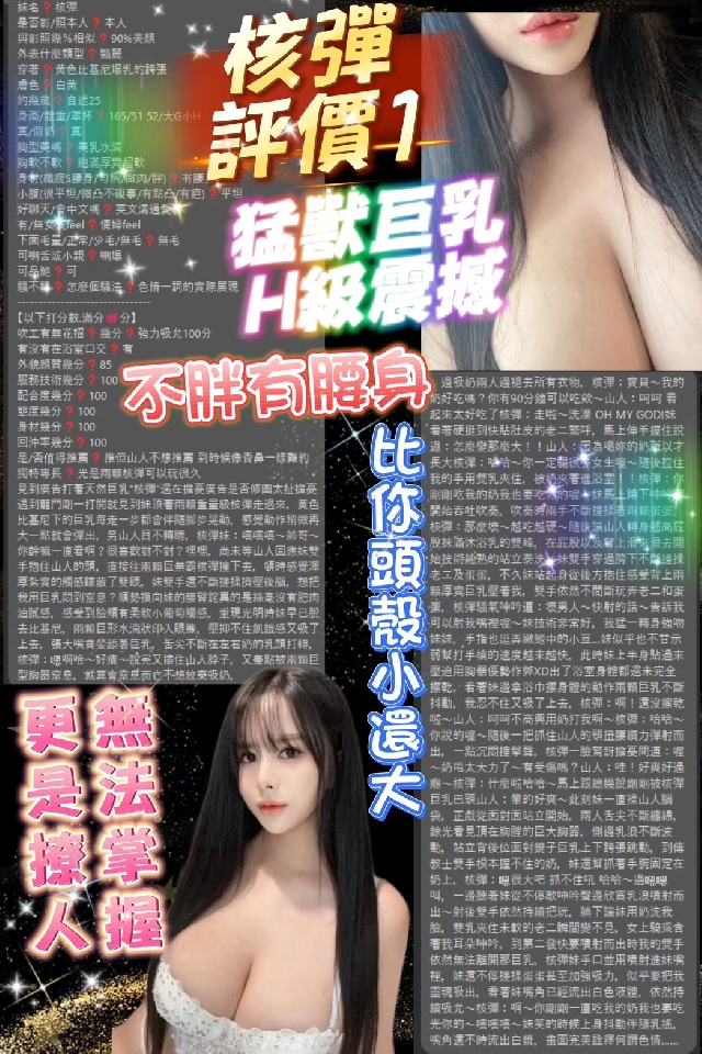 核彈-身高165/體重51/年紀25/罩杯H/泰國