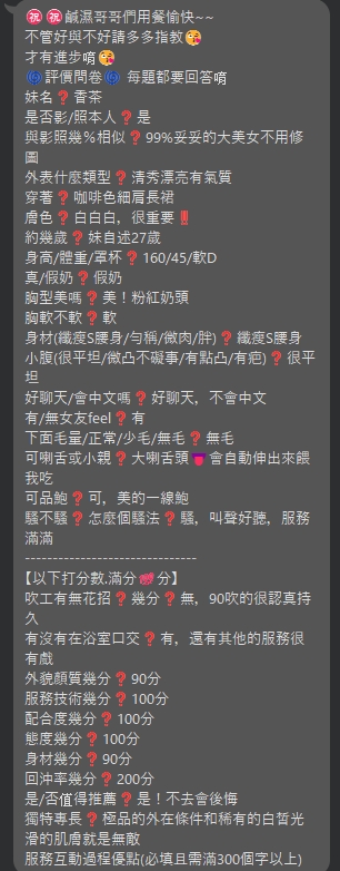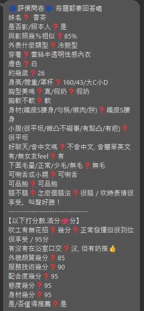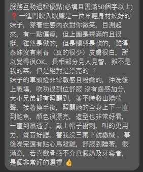 (服務項目) 舌吻(視清潔度) 水中蕭