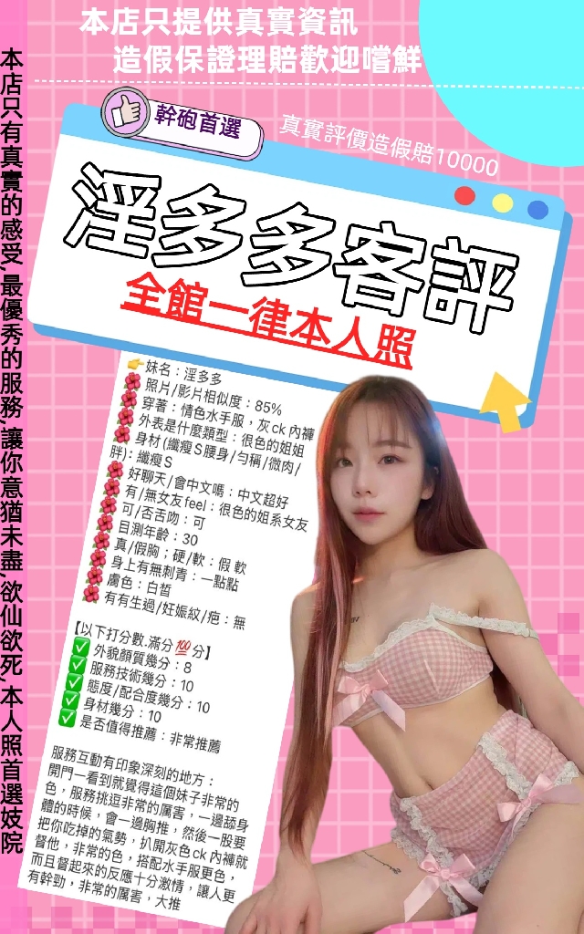 (服務項目) 無妊娠紋 無牙套 白皙膚色 不抽菸 無生過 中文溝通 英文溝通 無套吹 親親 舌吻 舔蛋 屁推 胸推 絲襪 共浴 奶炮 胸磨臉 按摩 服務加值 口爆+500 預約就送 30分鐘方案除外 免費開洞絲襪 多節優惠 可2+1 (100分鐘/3s) 可3+1 (200分鐘/3s) 可5+3 (400分鐘/5s)
